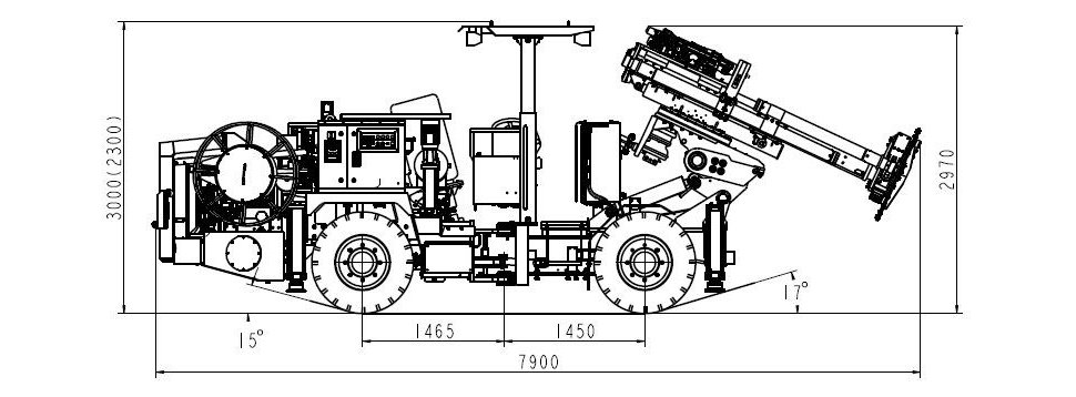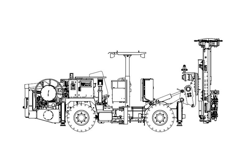 Este jumbo de perforación de rocas es un equipo económico de perforación minera, con operación manual requerida para el reemplazo de la varilla. Es adecuado para galerías y túneles de más de 3,5 m x 3,5 m de sección.