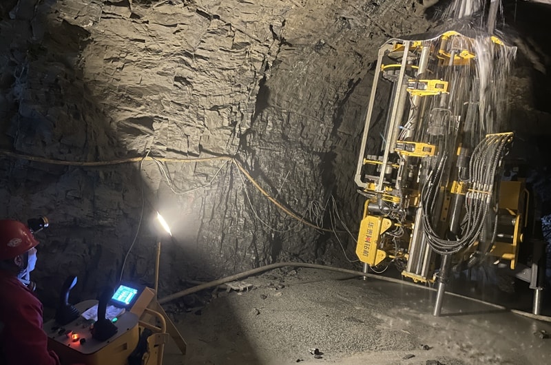 La perforadora subterránea de rocas cuenta con una plataforma de trabajo que facilita el movimiento horizontal de la pluma o brazo, un sistema indicador del ángulo de perforación de alta precisión, una plataforma operativa controllada de forma remota y un martillo de perforación de alto rendimiento, lo que garantiza unas operaciones de perforación eficaces, seguras y rápidas. Además, la máquina viene con una función de acceso remoto que permite realizar operaciones a distancia. Esto aumenta significativamente la eficiencia de la producción minera.