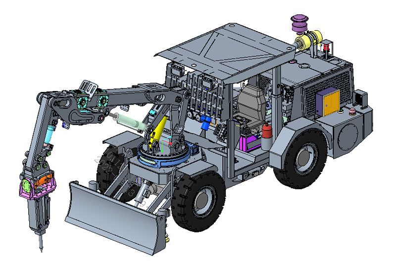 El desatador minero es compacto, con unas dimensiones de 5650 x 1600 x 1900 mm, la altura del vehículo es de 1,9 m, una anchura de 1,6 m y una cabina para el operario que puede bajarse hasta un mínimo de 1,5 m. Este desatador de rocas puede cumplir los requerimientos de los giros en ángulo recto en galerías y túneles de 3m de ancho.