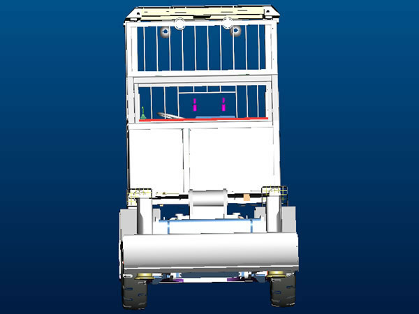 4. En la cabina de operación, se aplica un techo protector de alta resistencia para prevenir accidentes y daños. Mientras se eleva a la máxima altura, se puede alcanzar una excelente visión. Además, cuando el techo está completamente descendido, la altura de todo el jumbo es de sólo 2.100mm, facilitando el desplazamiento en lugares bajos.