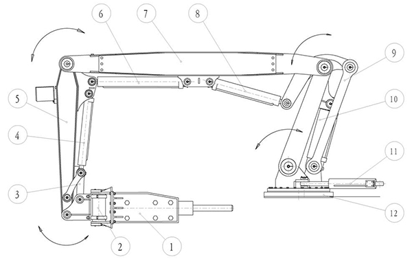 3. La pluma de extracción de rocas plegable patentada, junto con un dispositivo de movimiento paralelo mecánico, extiende enormemente el rango de trabajo y realiza una operación sencilla y ubicación rápida.